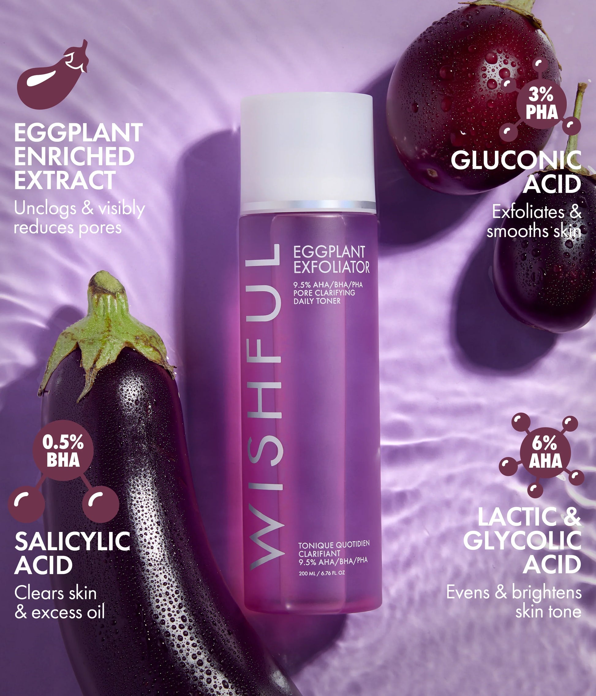 WISHFUL Eggplant Exfoliator: 9.5% AHA, BHA & PHA Pore Clarifying Daily Toner